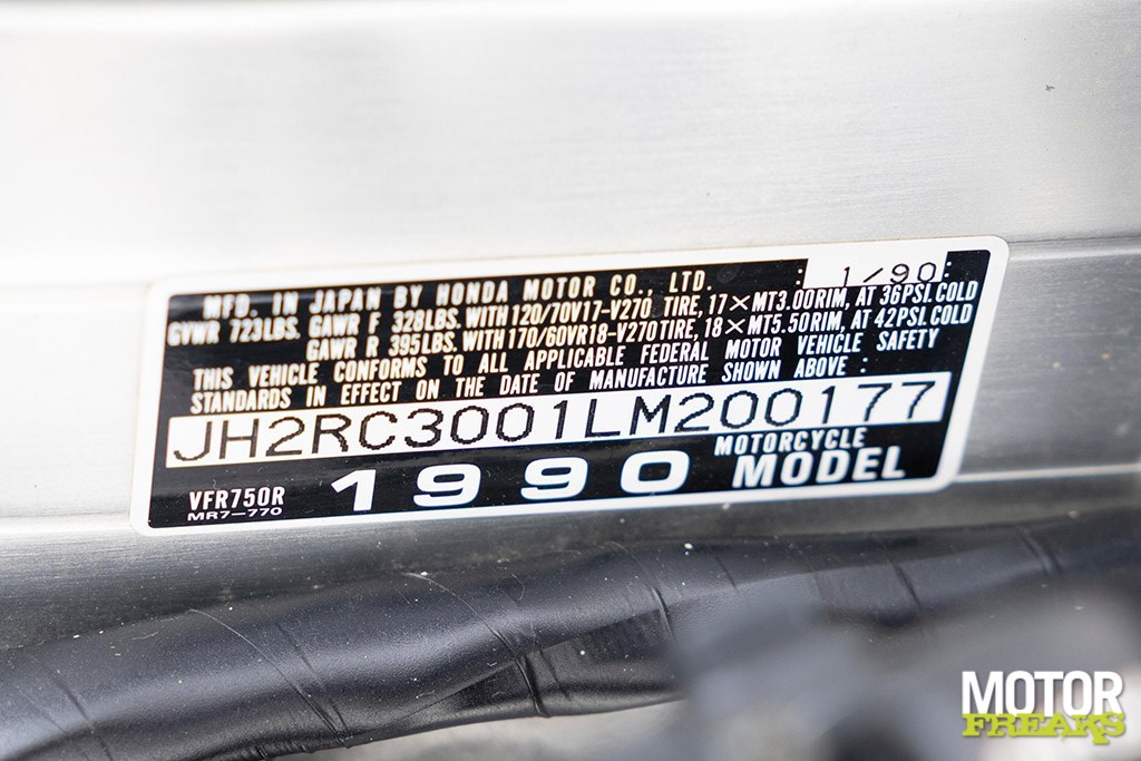 This particular example was delivered new in the US. In 1995 the Honda was imported to the UK by Carbon-Tek and purchased by the current owner, who had seen the advertisement in MCN. After a minor fall in 1996, the RC30 was put in the garage and not used since, making it probably the lowest mileage RC30 in the world.