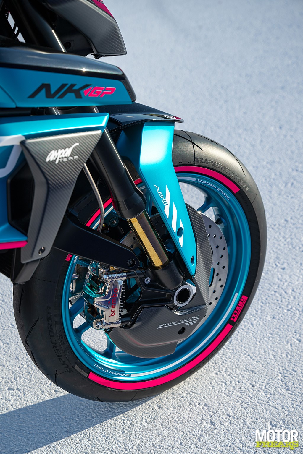 To underline the sporty character, CFMOTO supplies the GP Edition with a complete Brembo braking system. This means powerful, consistent braking power and perfect controllability, something that was already in order with the standard 675NK, but with this upgrade you really feel the difference when driving sportily or on the track.