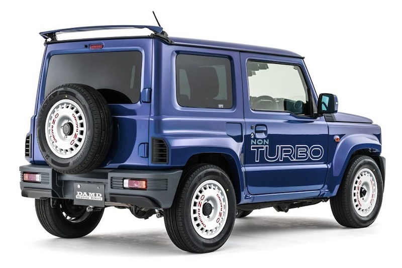 The new retro Jimnys from Damd, which will be shown at the upcoming Tokyo Auto Salon, are a lot less obvious. For example, Damd converts the Jimny into a cartoonish ‘remake’ of the square, but also much lower Lancia Delta from the 1980s. Although the logos are missing, Damd makes no secret of it: the creation is called ‘Little Δ’ , or ‘little Delta’. We see the characteristic round headlights of the Delta, but also the typical Lancia grille. The ‘HF Integrale’ part is expressed in heavily flared wheel arches and a stubborn, almost upright roof spoiler.