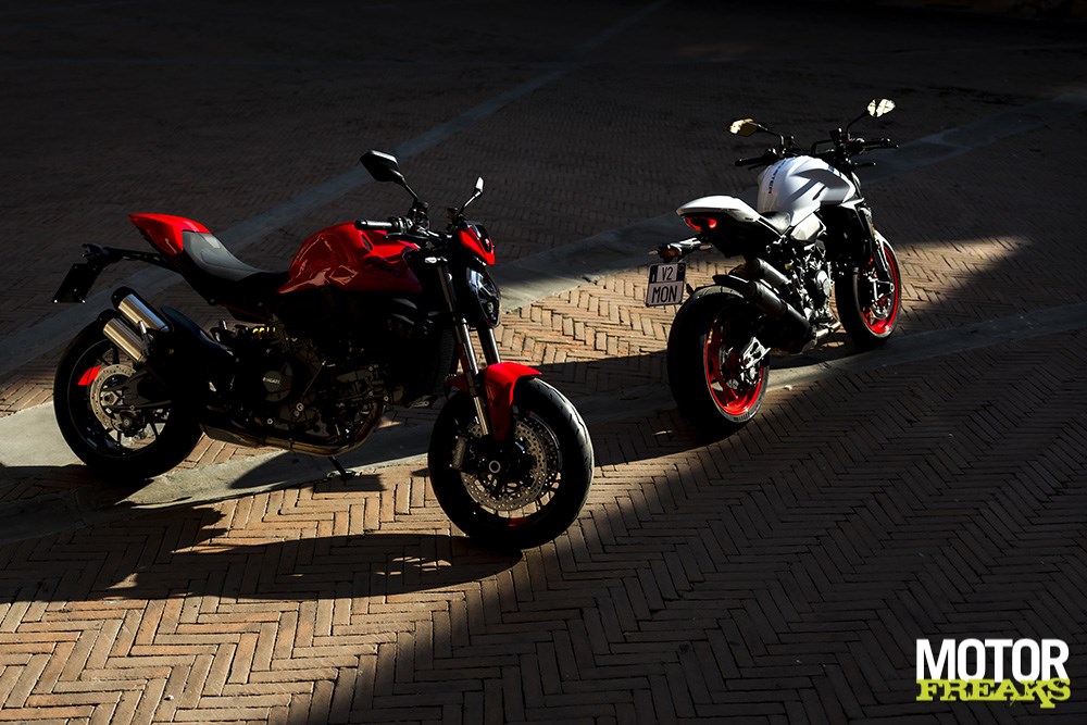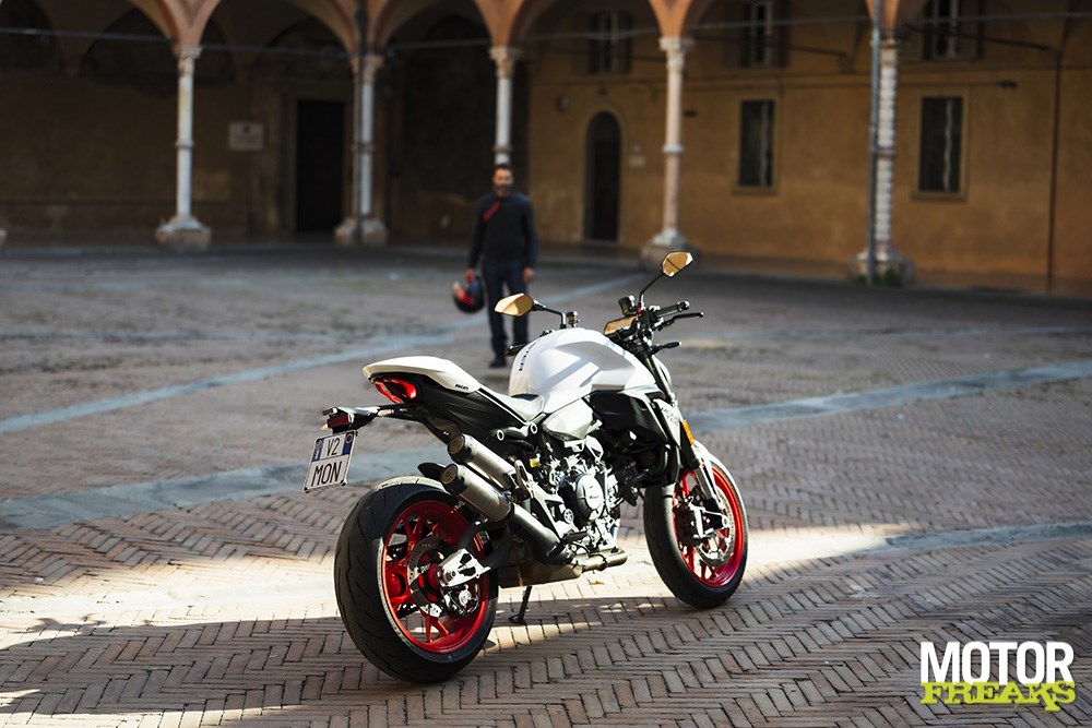 The Brembo brake package with twin 320mm front discs and M4.32 radial calipers offers progressive initial bite and consistent braking power, while the Pirelli Diablo Rosso IV tires (120/70 and 180/55) guarantee maximum grip and safety on the road. The compact saddle, higher handlebars and narrow side panels provide natural control and a comfortable riding position, both in the city and on winding roads.