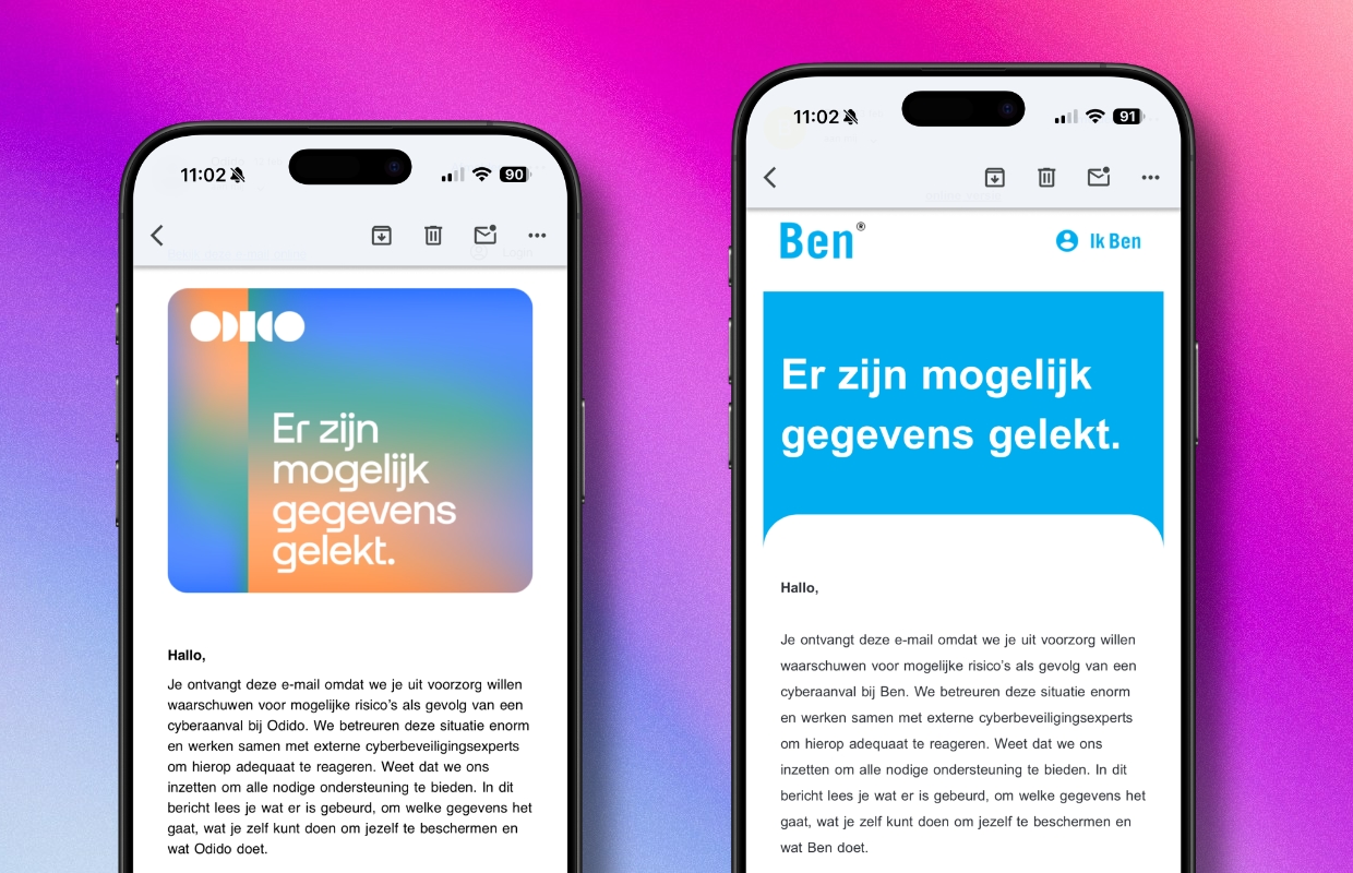 With the leaked information, cybercriminals can send fake invoices that appear to come from Odido or Ben. Therefore, always check carefully whether the invoice is correct. A convenient way is to log in to ‘My Odido‘ or ‘My Ben‘. There you can find all invoices and easily check whether the received invoice is also visible there. Isn’t that the case? Then it is probably a scam – do not pay and contact Odido.