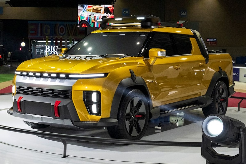 KGM is opening its fresh EV offensive in the Netherlands with the reasonably competitively priced KGM Torres EVX, but it will not stop there in the near future. AutoWeek learned at a presentation by the brand that three more models are coming this way in the near future. If all goes well, the first of these is expected at the end of this year, the last at the end of next year. It concerns an electric pick-up, followed by a relatively compact electric SUV and finally a large electric SUV. We secretly saw those three before last year.