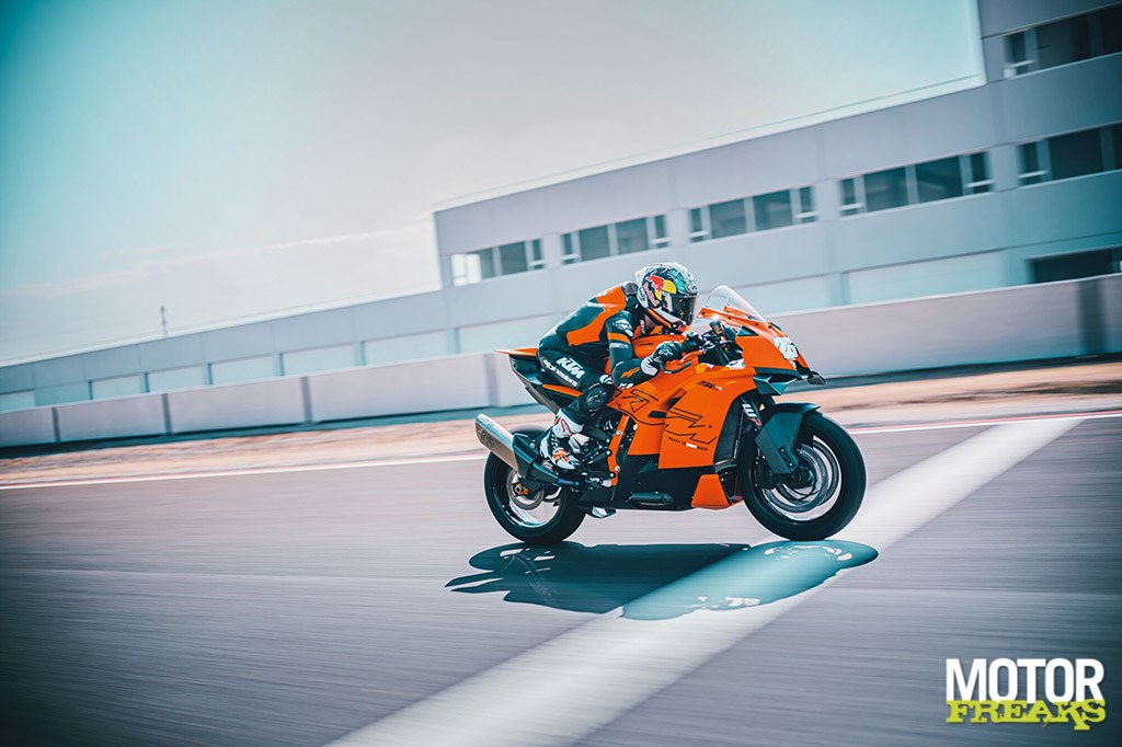 The 990 RC R wants to be more than a hardcore track weapon. KTM has paid a lot of attention to ergonomics. The six-point contact zones between arms, legs and torso ensure comfort on longer rides, while adjustable footpegs accommodate riders of different heights. The 16-liter tank also provides a reasonable range, something you would not expect from a pure racing monster.