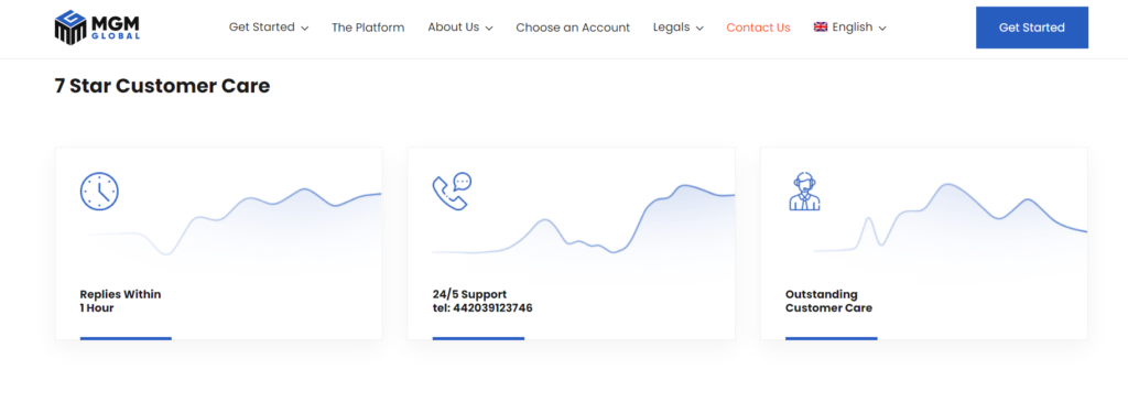 The Customer Support of MGM Global is available 24/5. Whether it’s an email, phone call, or an online form, MGM Global embraces a wide array of channels to cater to your preferred mode of communication while seeking support.