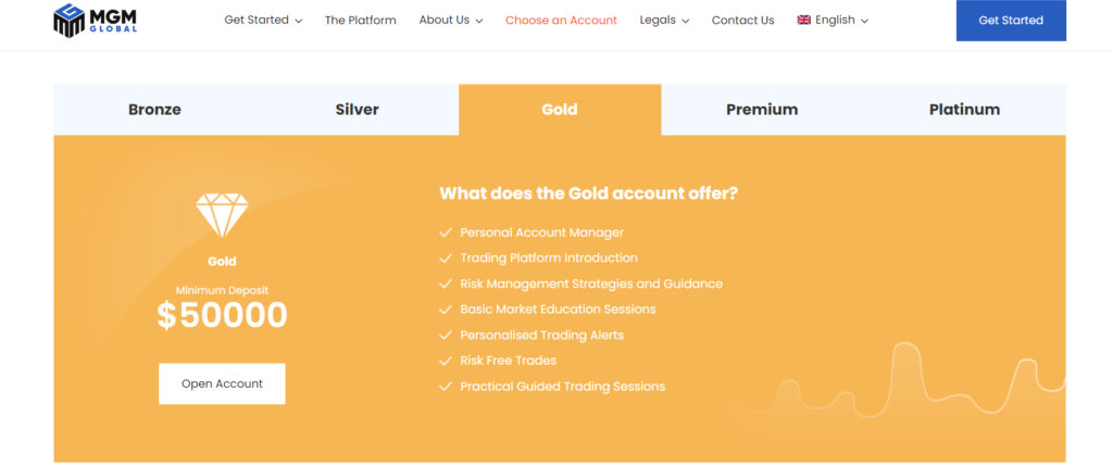 MGM Global caters to individual preferences with multiple account types, ranging from Bronze to VIP+. Each tier comes with its own advantages, ensuring a tailored trading experience.