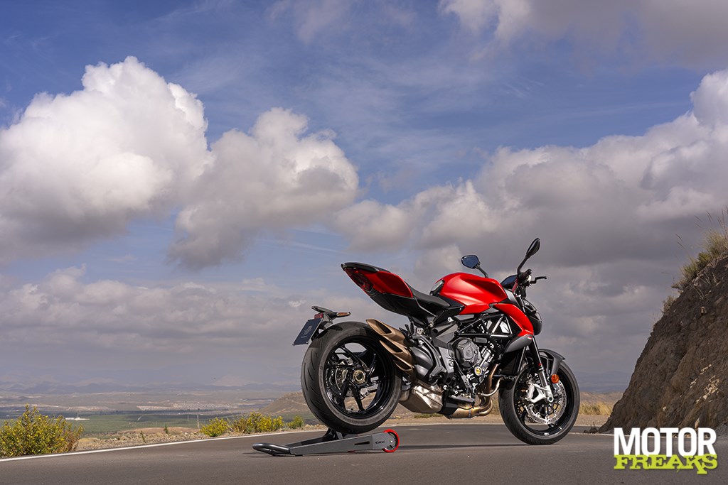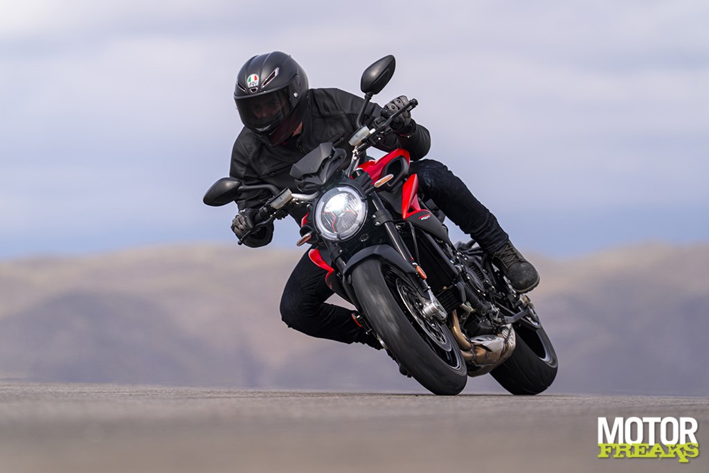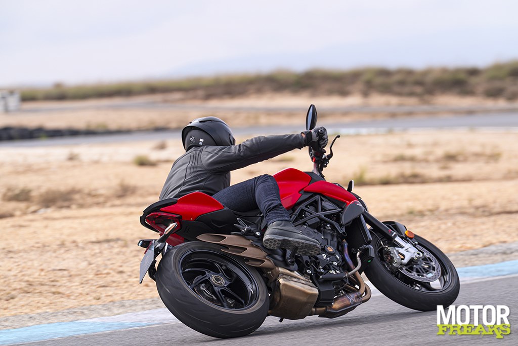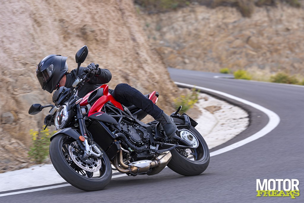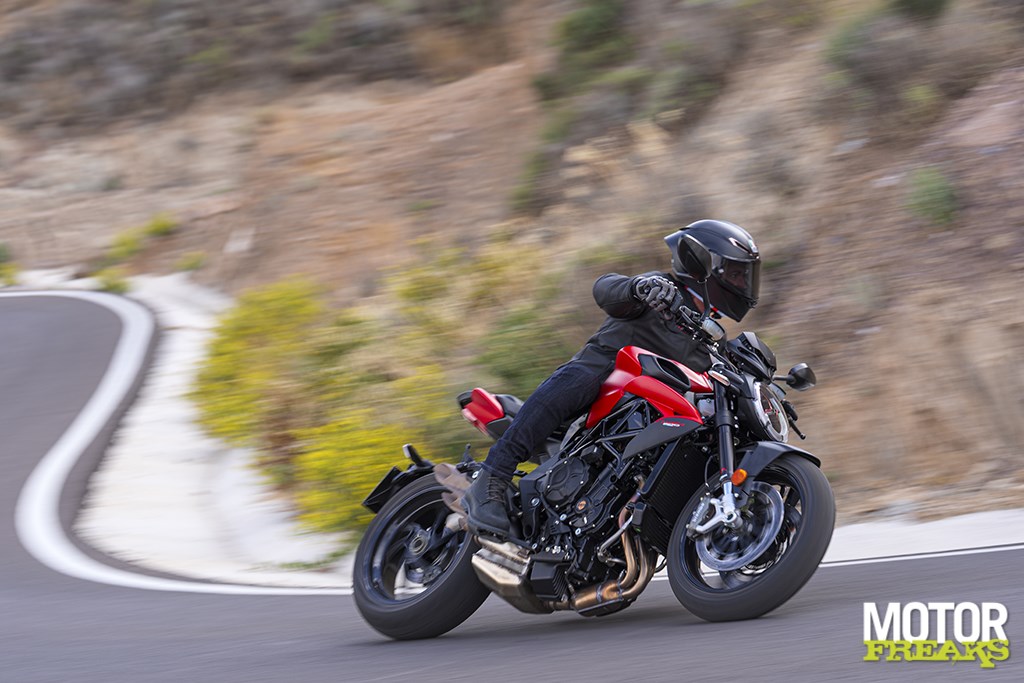 On Bridgestone S22s (120/70 and 180/55), the Brutale feels at home on both winding back roads and fast circuits.
