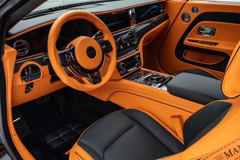 Mansory has come up with an arsenal of visual extras to dress up your Rolls-Royce Spectre. The coupe gets an extra edge made of carbon fiber at the bottom of the front bumper, inserts and extra LED daytime running lights in the front bumper and a fierce-looking rear bumper with diffuser and even an extra brake light. A hood made of carbon fiber is also present, as are side skirts made of the same lightweight material. Mansory sticks an extra spoiler at the top of the rear window and an extra edge will also be placed on the tailgate. Those who get more complicated butterflies in the stomach as carbon fiber use increases, will be further treated by Mansory to carbon fiber inserts on the front fenders, around the rear lights and in the C-pillar. Even the Rolls logos are replaced by off carbon raised Mansory badges.