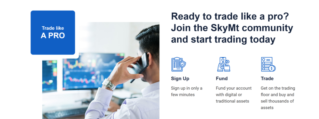 Answer: SkyMt offers flexible funding options, allowing traders to deposit funds using both digital and traditional assets.