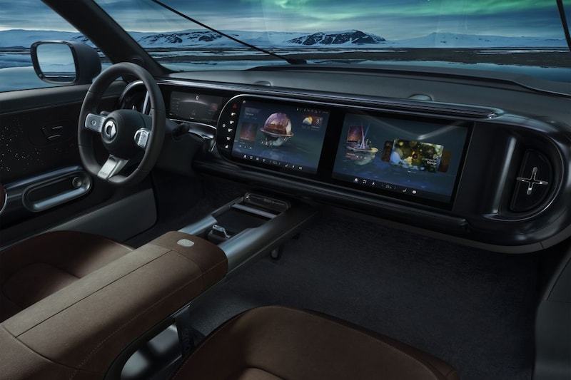The Smart Concept #5 is still richly endowed with conceptual extras. For example, we see a light bar on the roof, a folding step at the rear so that you can access the items on the roof and even an integrated winch. Don’t expect such decoration on the production version. The interior of the Smart Concept #5 is filled with screens. We count at least three inside. According to Smart, everything runs on AMD V2000 chips and that sounds like a good idea autojournaille perhaps more interesting than it actually is.