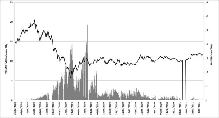 I have added two pictures of the price development of emission rights at the bottom, one from phase 1 (2005-2007), the other from phase 2 (2008-2012).