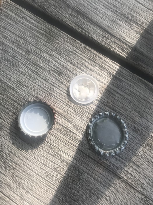 The inside of a bottle cap, not a chandelier ;-), has a plastic round so that the corks will perfectly close the bottle neck. You can think of it as a sealing ring. Metal and glass are 2 rigid materials that cannot be compressed, so an extra round of plastic is needed.